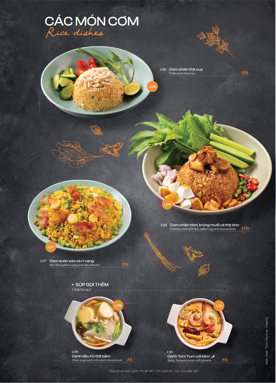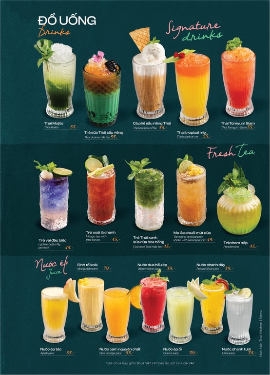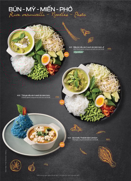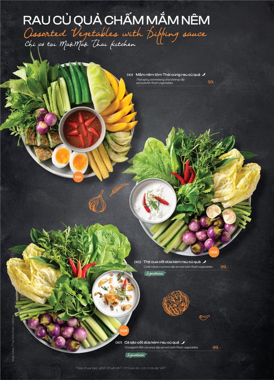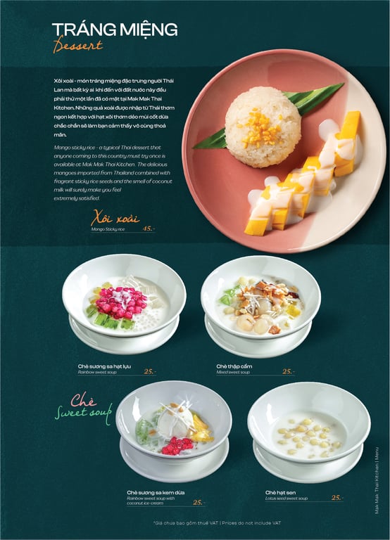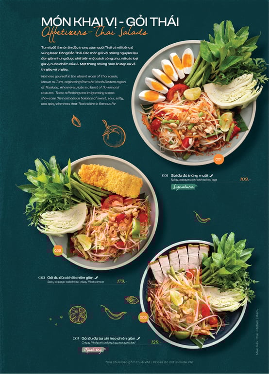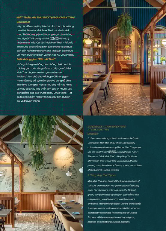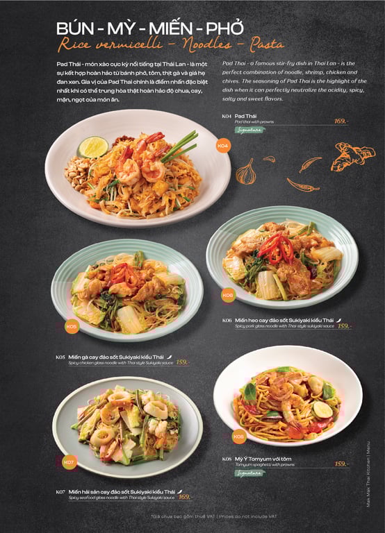 Bạn có thể thỏa mãn "cơn khát" vị Thái với menu đa dạng hơn 100 món Thái ngon tuyệt đỉnh. Từ những món ăn nổi tiếng như canh Tom Yum, cà ri xanh, vàng, đỏ, pad Thai, cho đến những món ăn bản địa có thể bạn chưa từng thử - menu Mak Mak Thai là một kho báu ẩm thực sẽ khiến vị giác của bạn "bừng tỉnh".